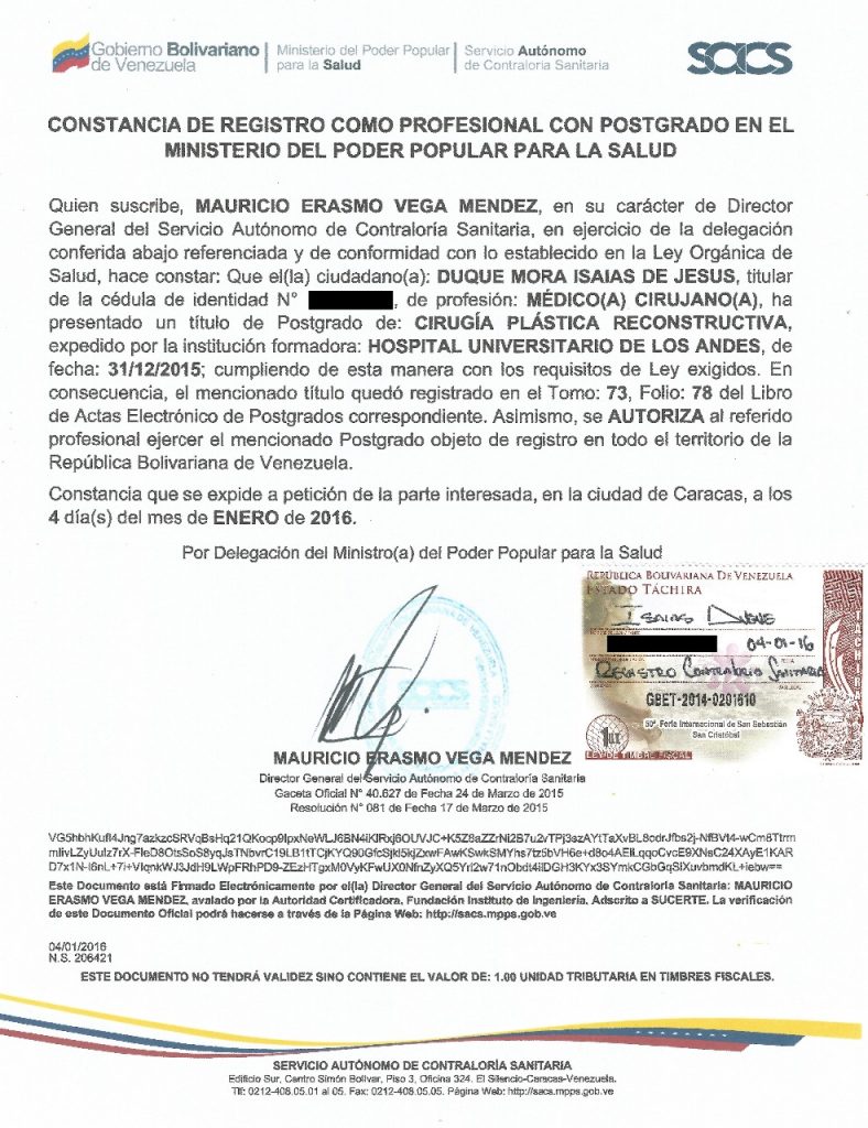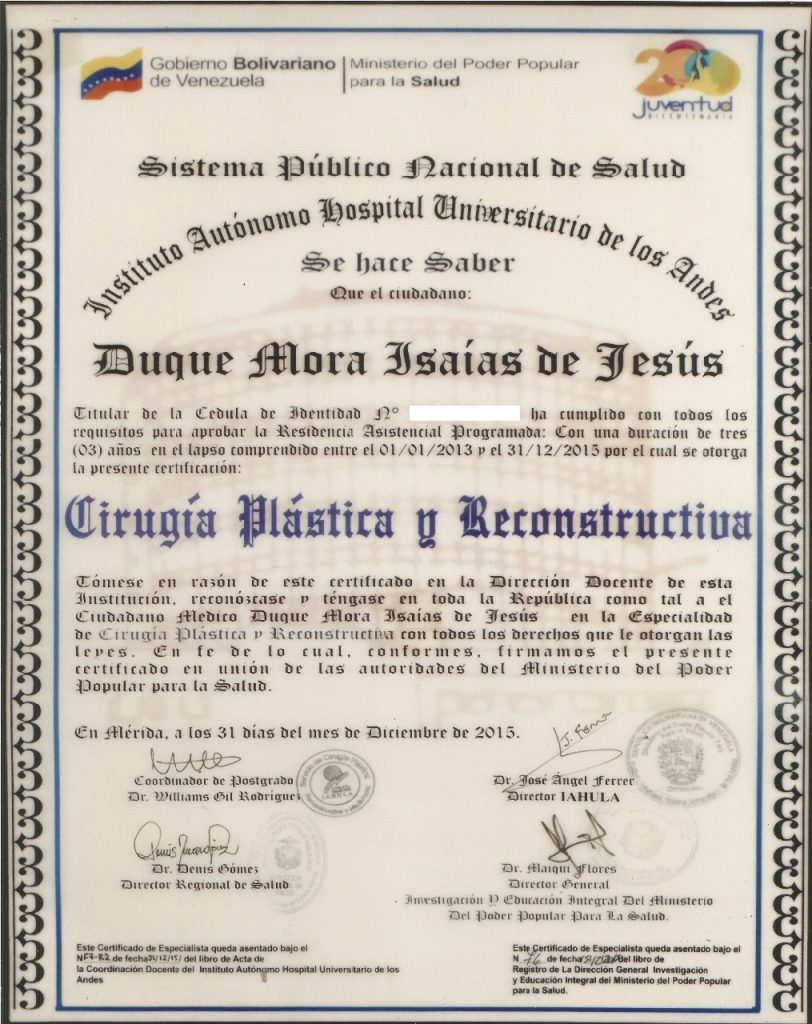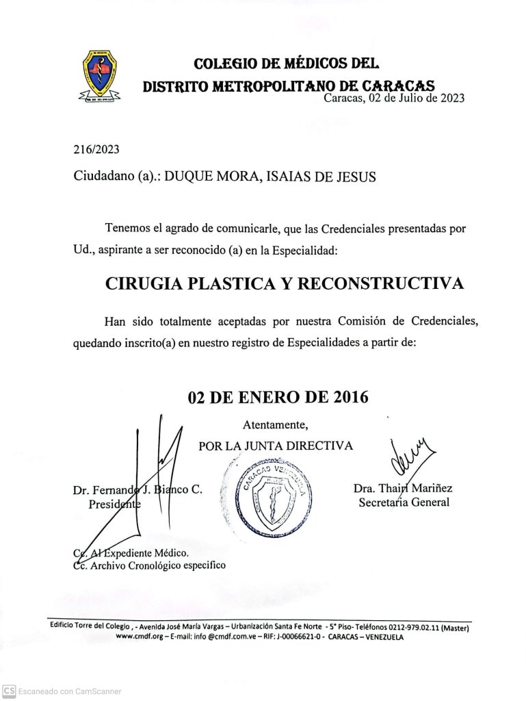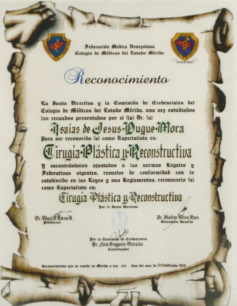 Especialista en Cirugía plástica, Estética y Reconstructiva. Egresado de la ilustre Universidad de Los Andes y con Especializaciones realizadas en el Instituto Autónomo Hospital Universitario de los Andes y la Universidad Francisco de Miranda.
